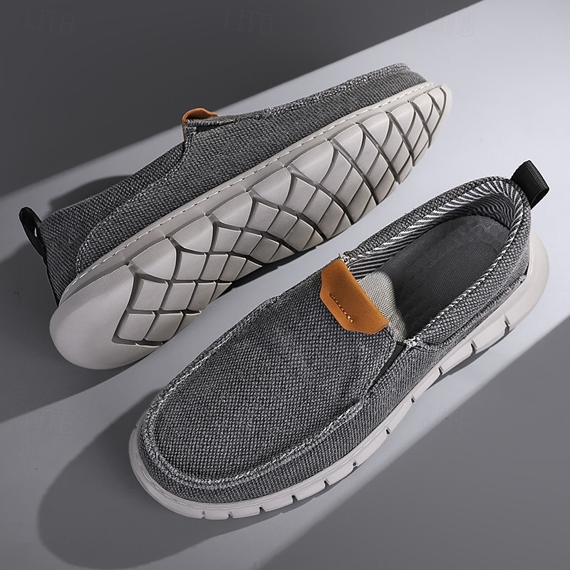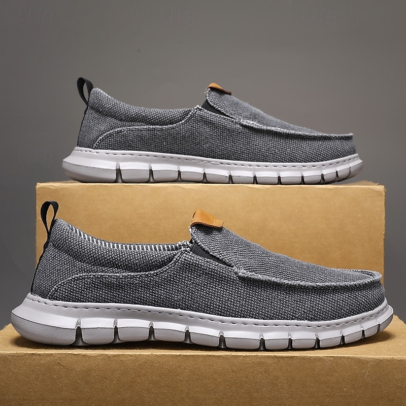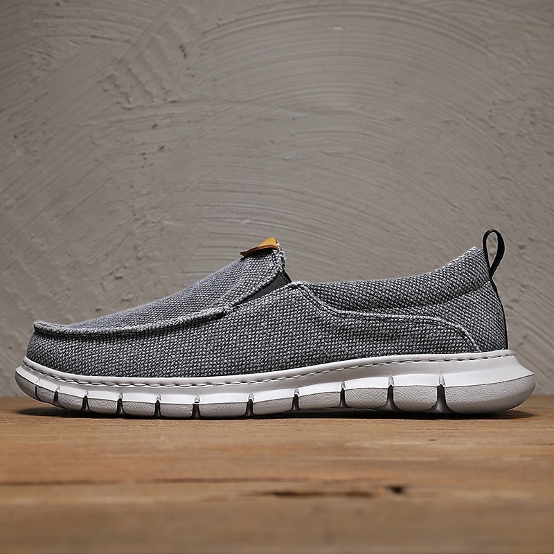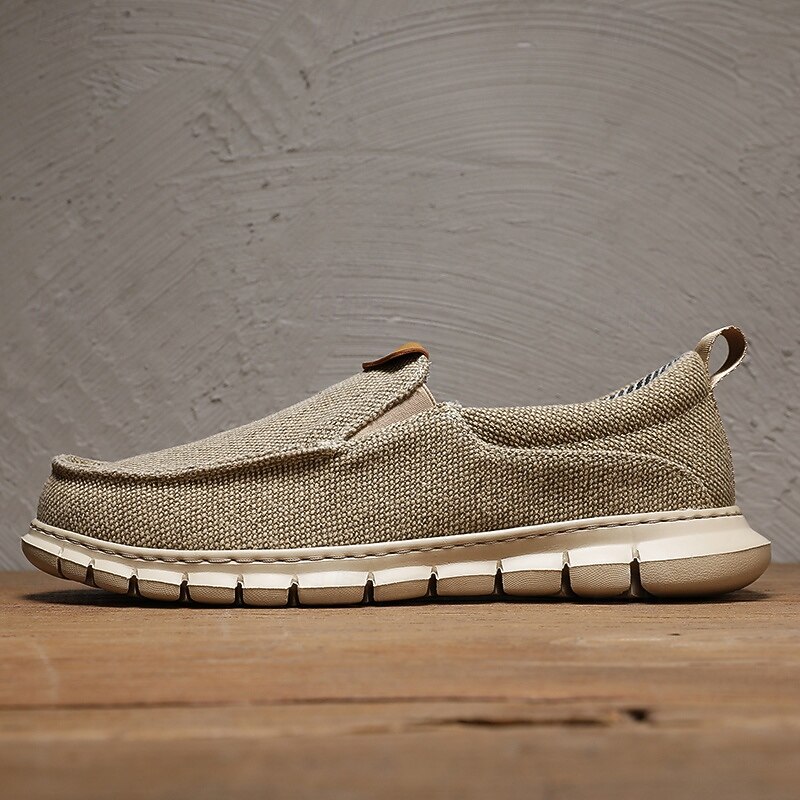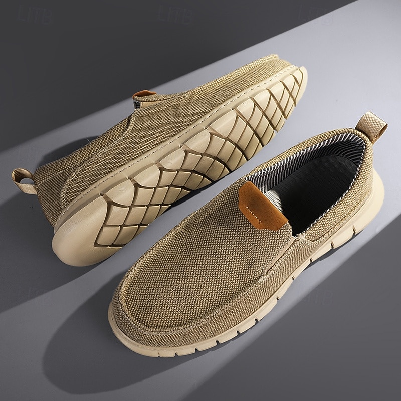 HOT ! Men's Casual Slip-On Shoes – Comfortable Beige Canvas Loafers with Flexible Sole for Everyday Wear