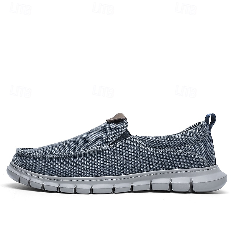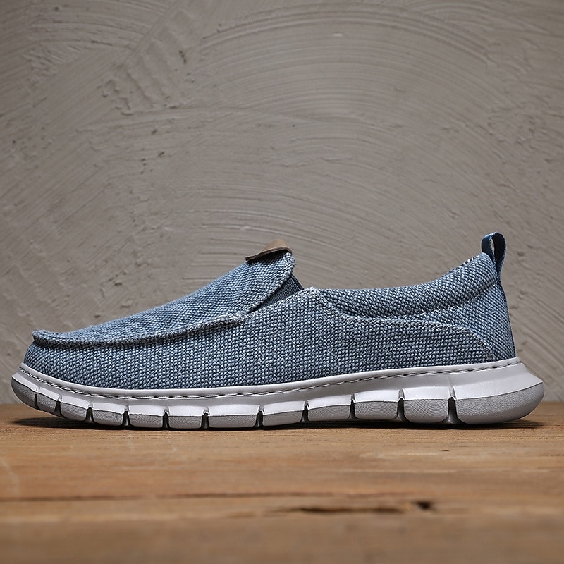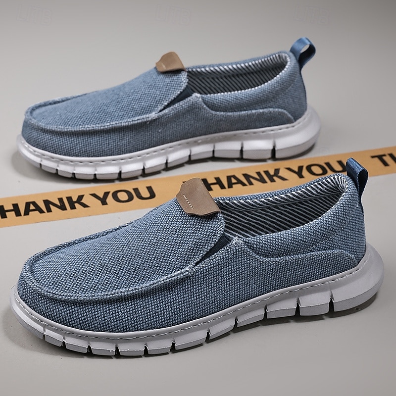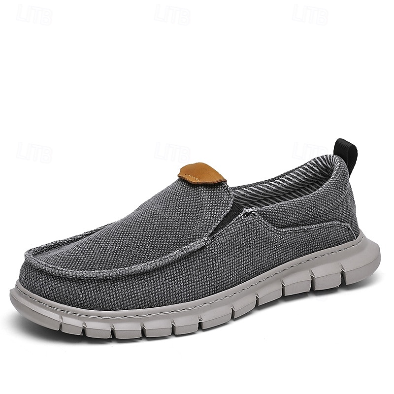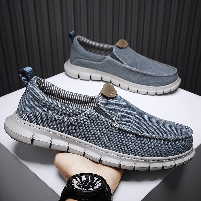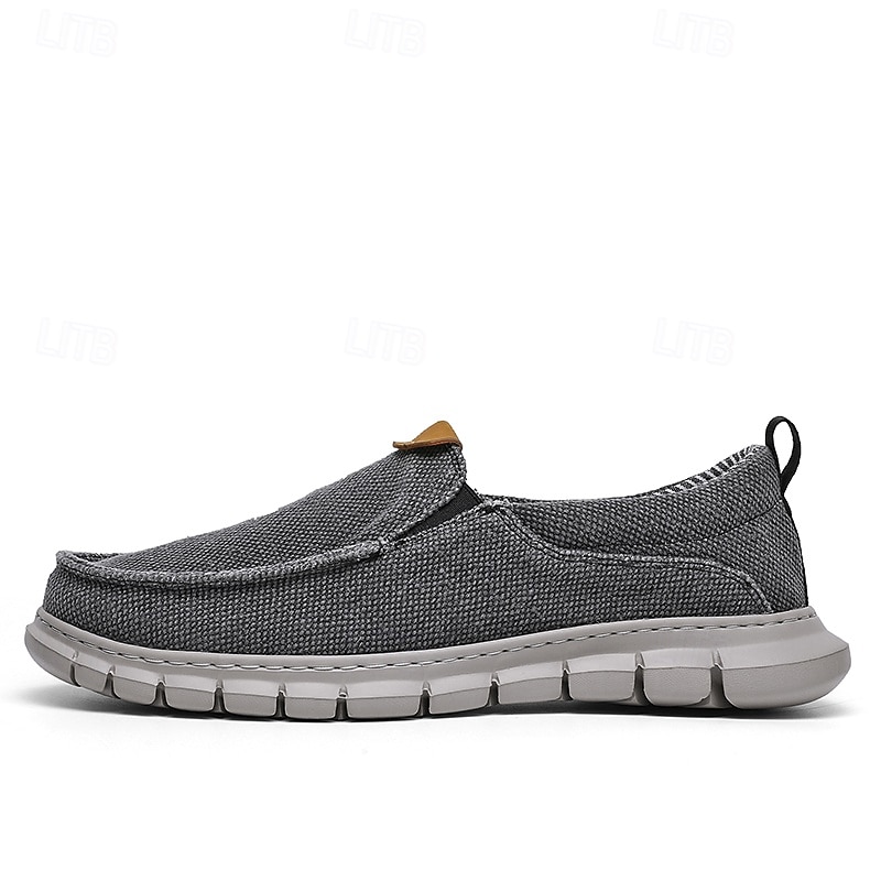 HOT ! Men's Casual Slip-On Shoes – Comfortable Beige Canvas Loafers with Flexible Sole for Everyday Wear