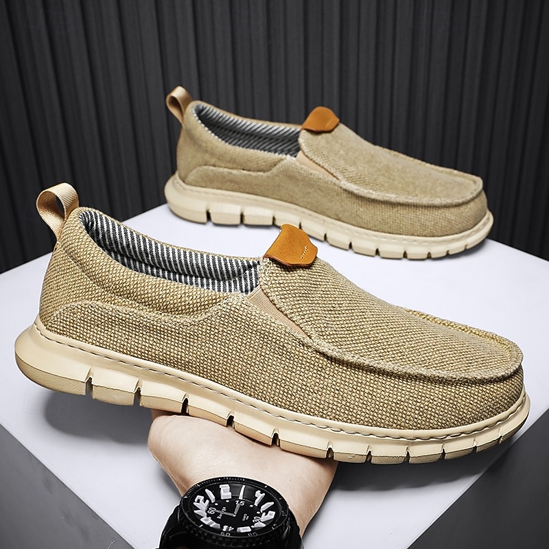 Men's Casual Slip-On Shoes – Comfortable Beige Canvas Loafers with Flexible Sole for Everyday Wear 28