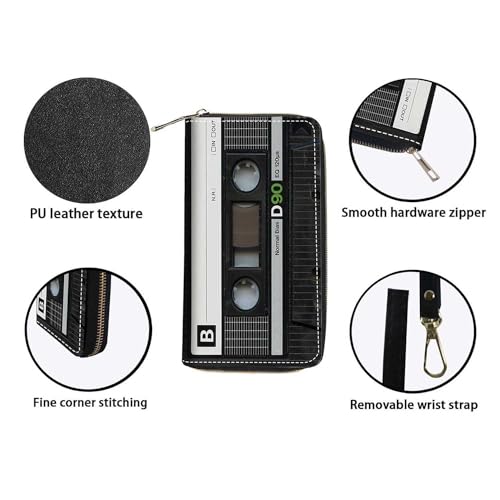 Vintage Music Cassette Wallet for Women with Credit Card Holder Coin Money Clip PU Leather Zip Around Clutch Wallet 6