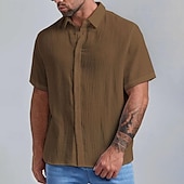 More information about Men's Summer Shirt Casual Shirt Beach Shirt Button Up Shirt Black White Wine Brown Green Short Sleeve Plain Lapel Vacation Hawaiian Button-Down Clothing Apparel Polyester Fashion Casual Comfortable