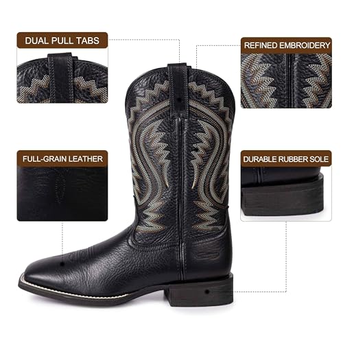 • PREMIUM FULL GRAIN COWHIDE UPPER & SHAFT: The upper of these Western cowboy boots is crafted from high-quality full-grain cowhide. This type of leather is known for its natural texture, softness, and excellent breathability. It not only provides a comfortable wearing experience but also ages gracefully, developing a unique patina over time.