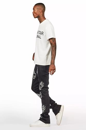HOT ! Men's Yari Rhinestone Stacked Flare Jean