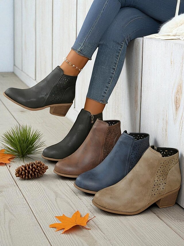 Women's Ankle Boots with Cutout Design – Casual Low Heel Short Booties for Fall Fashion, Work and Weekend Outings 20