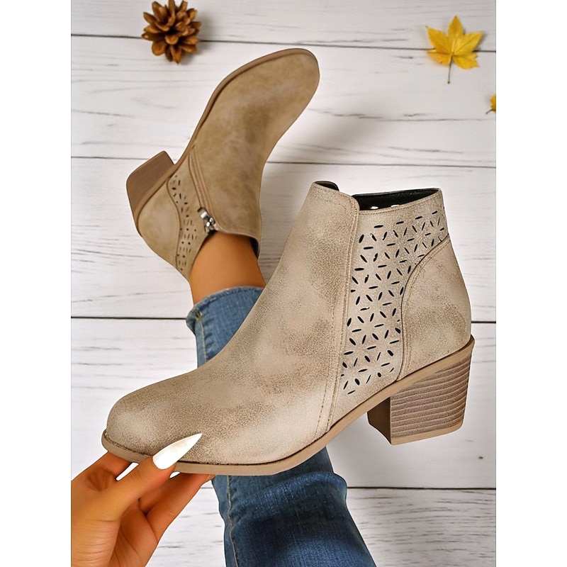 Women's Ankle Boots with Cutout Design – Casual Low Heel Short Booties for Fall Fashion, Work and Weekend Outings 21