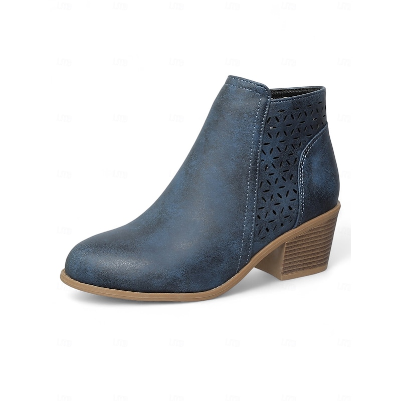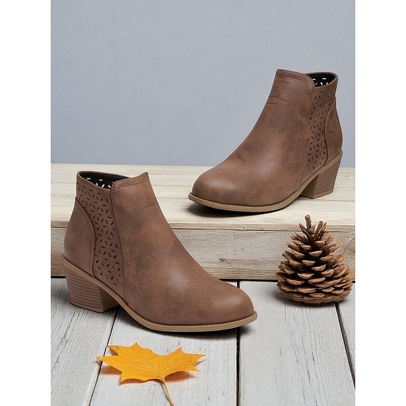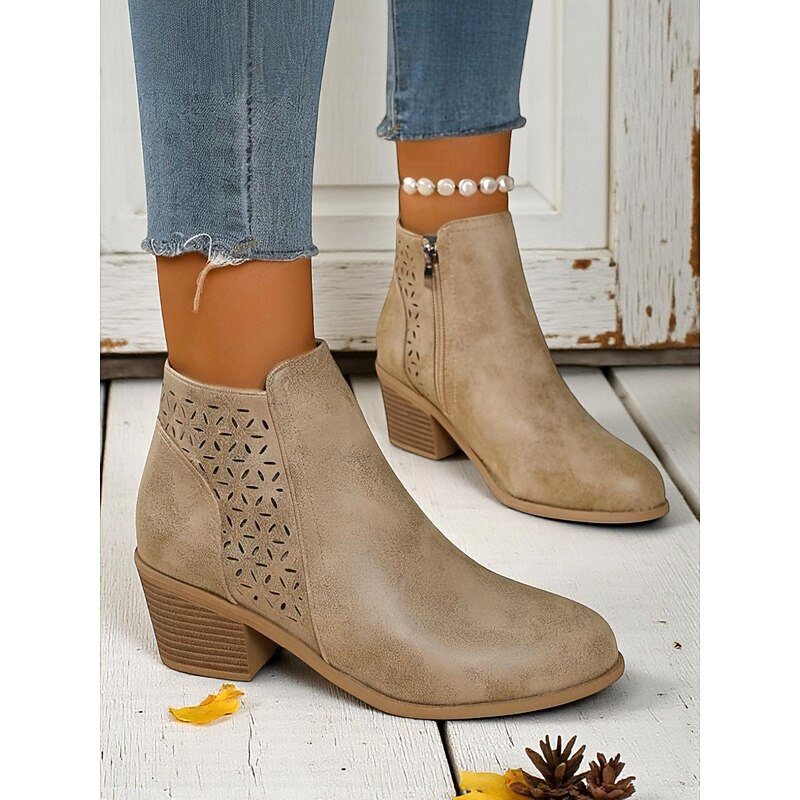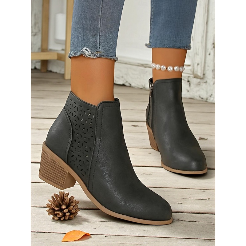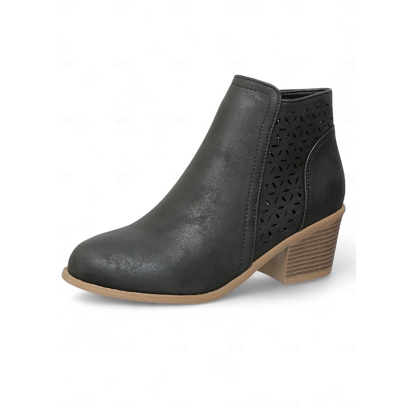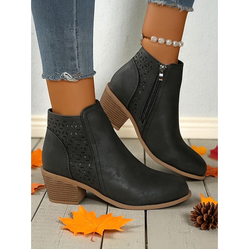 Women's Ankle Boots with Cutout Design – Casual Low Heel Short Booties for Fall Fashion, Work and Weekend Outings 2