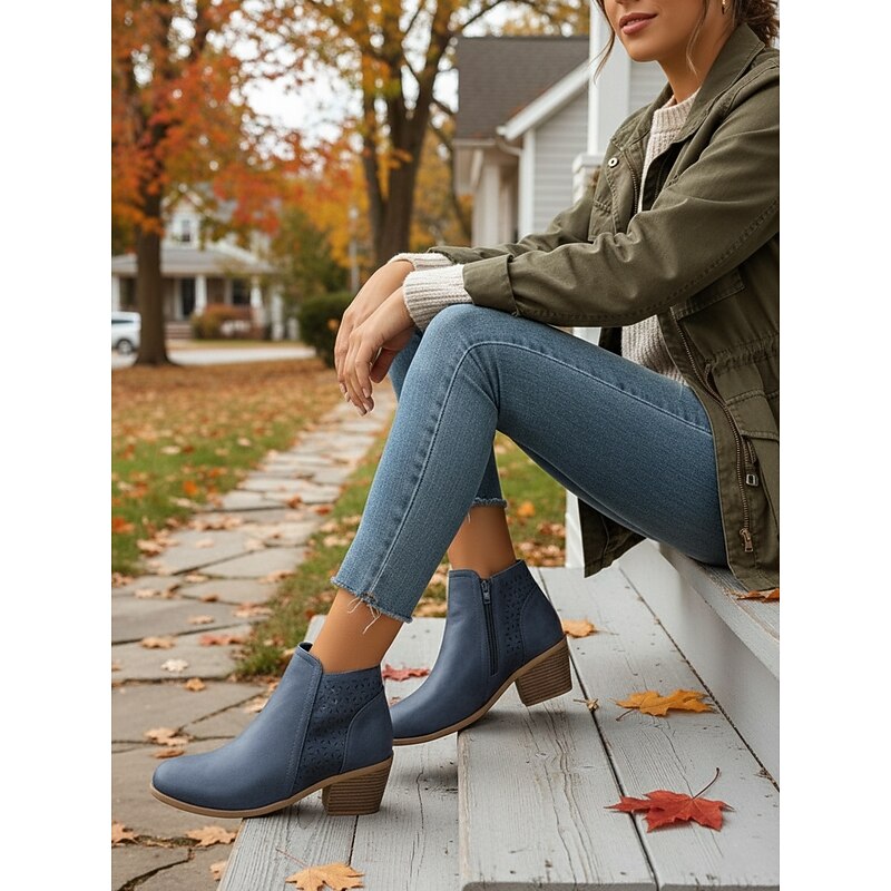 Women's Ankle Boots with Cutout Design – Casual Low Heel Short Booties for Fall Fashion, Work and Weekend Outings 24