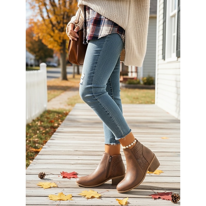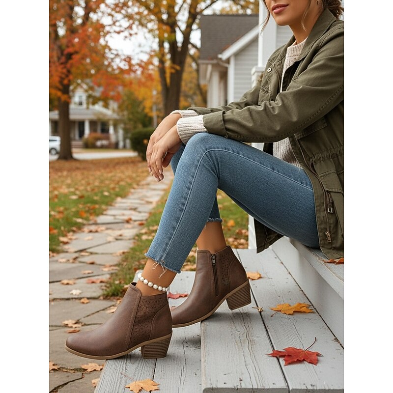 Women's Ankle Boots with Cutout Design – Casual Low Heel Short Booties for Fall Fashion, Work and Weekend Outings 18