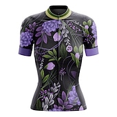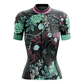 Highlights Product Selling Points in English: - Classic 3-pockets behind the cycling shirts for men can store essentials like your wallet, maps, and snacks. - The cycling jersey short sleeves are made of quick-dry fabric, which offers moisture management to keep you dry and comfortable during your ride. - Silicon grippers hold the tops biking clothing in place, preventing sliding while pedaling. The cuff of this short sleeve is made of high elastic tricot fabric, which has a certain degree of anti-skid function. - The reflective strip ensures visibility, providing safety when cycling in dark conditions and avoiding traffic accidents. - Suitable for women. - Stretchy fabric for added comfort and flexibility. - Ideal for athletic leisure activities. - Graphic and floral botanical patterns available. - Suitable for mountain biking (MTB) and road cycling disciplines.