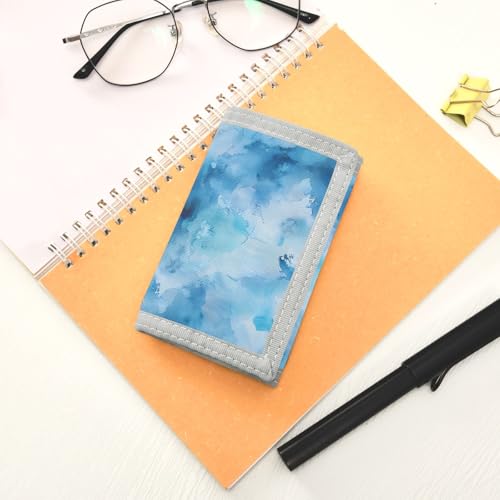ALAZA Kids Wallets for Boys Girls Toddler Trifold Wallet Children Small Blue Watercolor with Zipper Coin Pocket 6