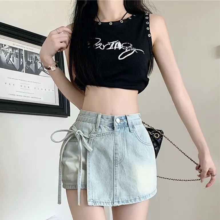 This mini denim skirt boasts a versatile style, perfect for various occasions. Its high-waisted design and A-line silhouette flatter any body type.