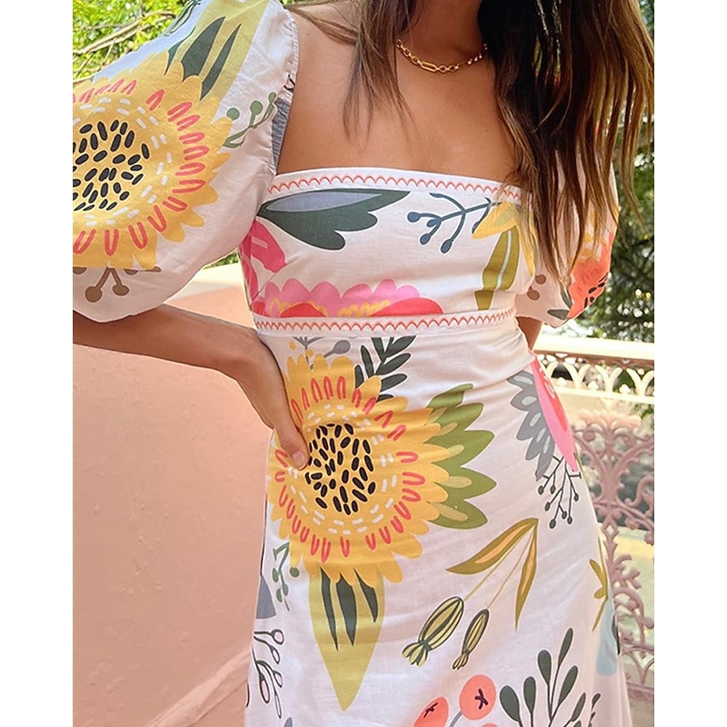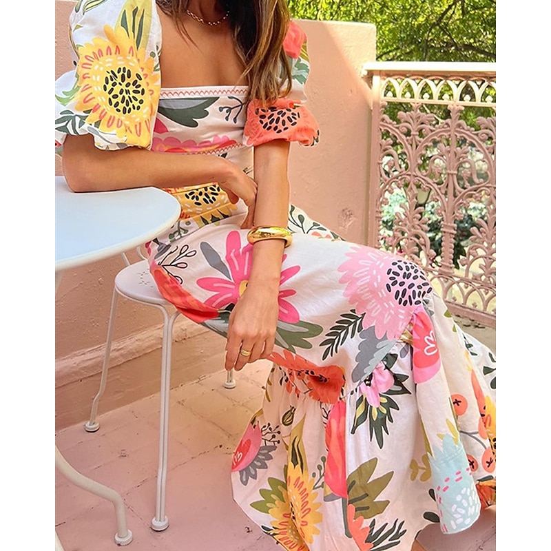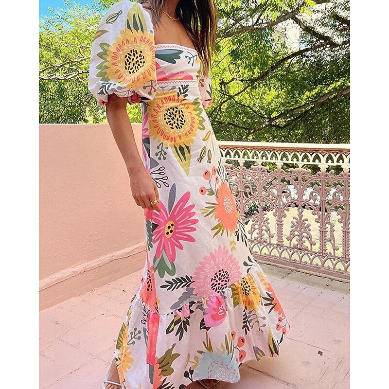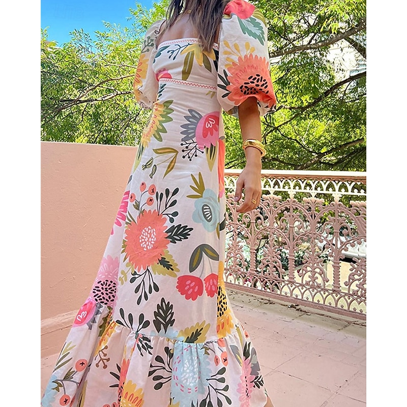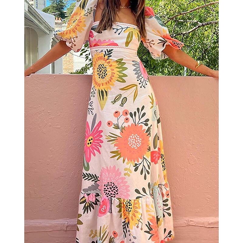 More information about Women's Long Dress Maxi Dress Casual Dress Summer Dress Boho Dress Fashion Lantern Sleeve Outdoor Holiday Date Regular Fit Geometric Short Sleeve Off Shoulder Blue Orange Summer Spring