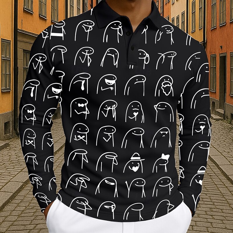 Mens Long Sleeve Polo Shirt Funny Flork Meme Graphic, Casual Lifestyle Wear 8