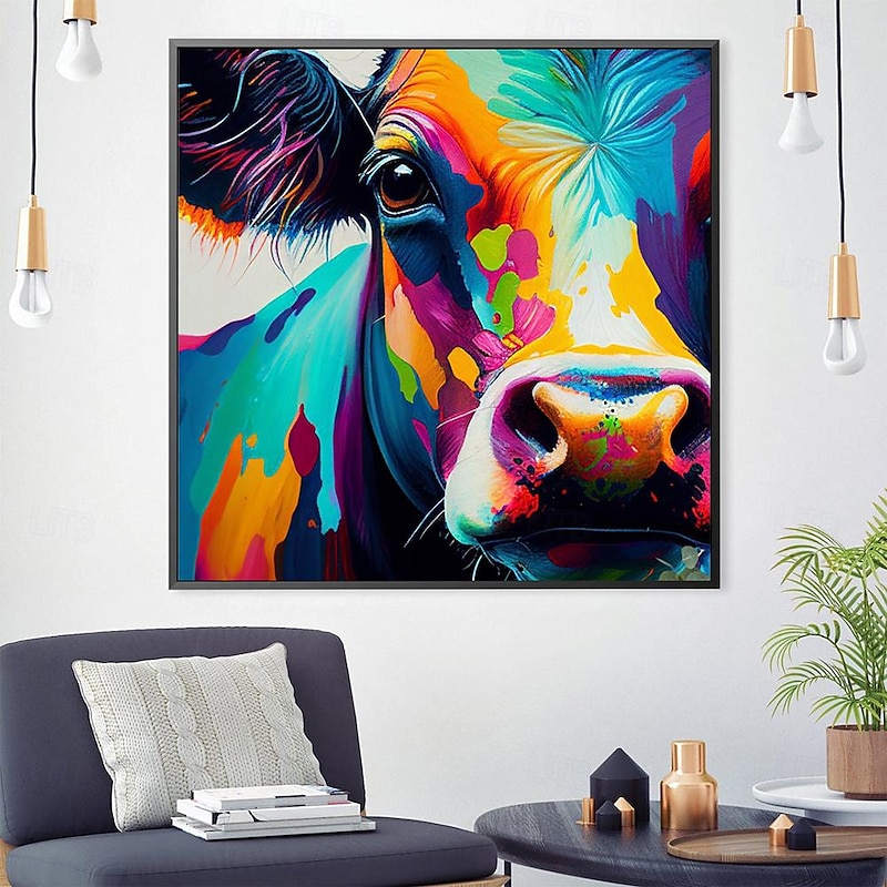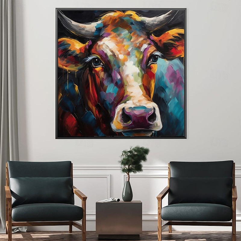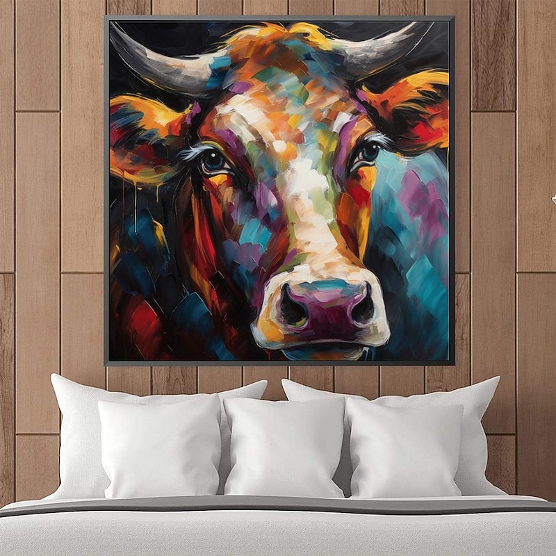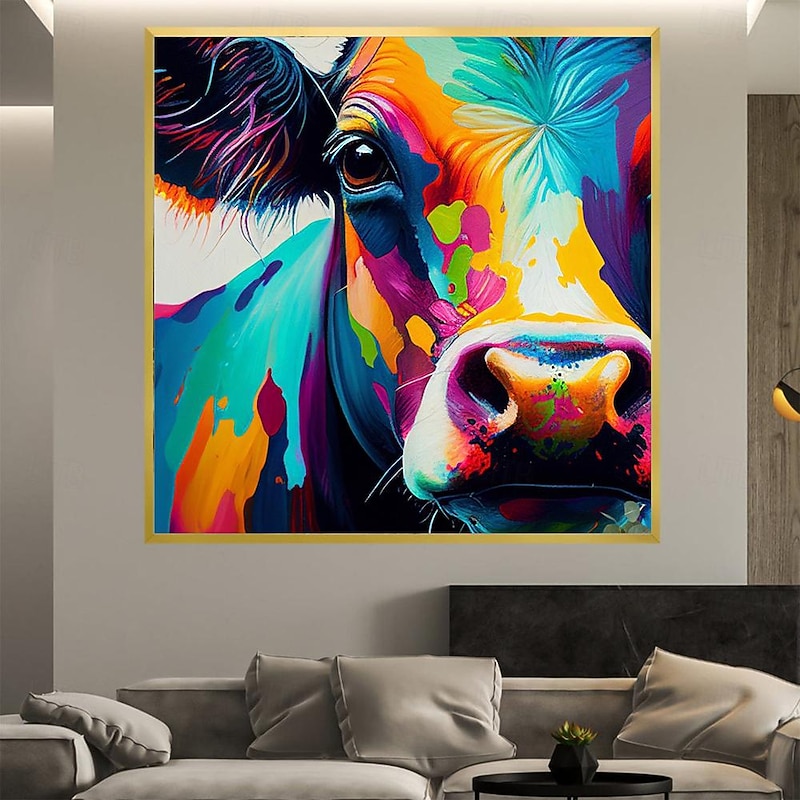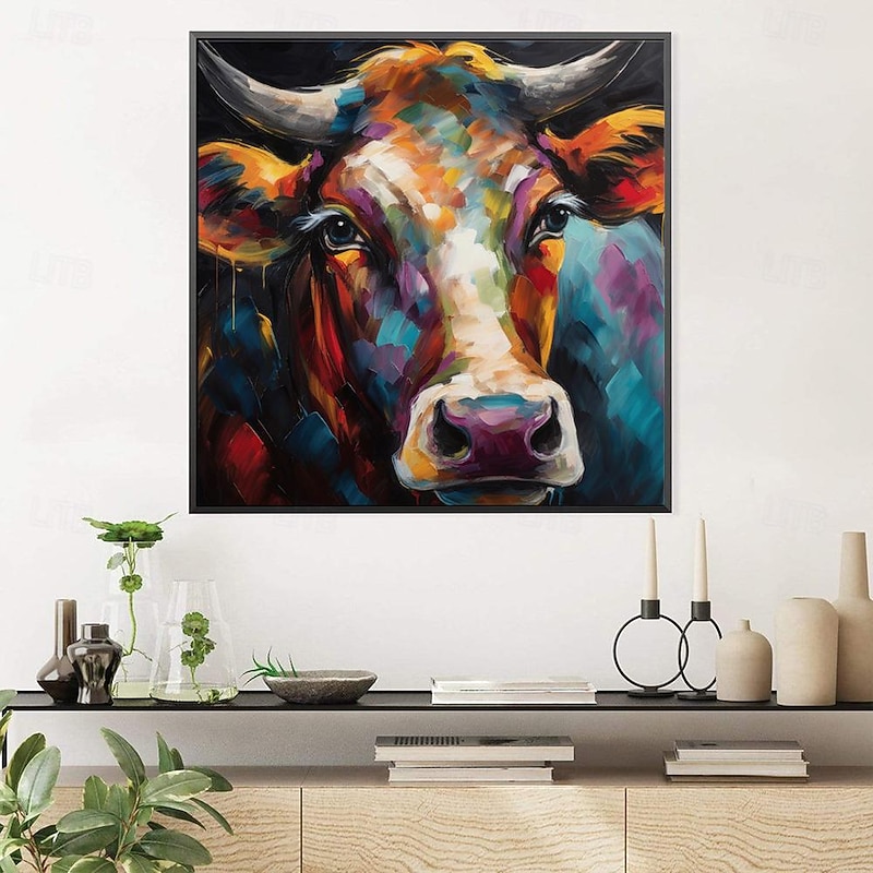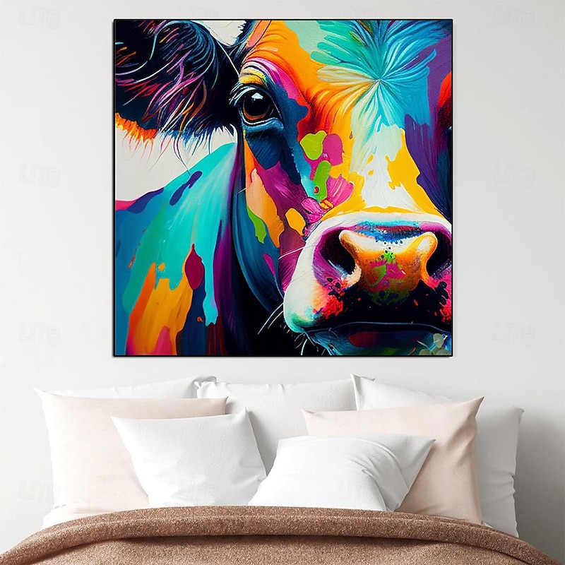 $147.99 - Abstract Cow Oil Painting hand painted Colorful Animal texture painting Unique Artwork Vibrant Animal Canvas painting for Wall Art Farmhouse Decor Living Room living room home decor 2025. Shop for cheap Animal Paintings online? Buy at lightinthebox.com on sale today!