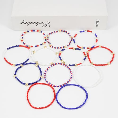 Material: ResinMetal type: ZincClasp type: NonGem type: No gemstonePATRIOTIC DESIGN: Set of beaded stretch bracelets featuring red, white, and blue colors with golden star accents in a iconic American flag-inspired patternVERSATILE SET: Multiple bracelets can be worn together or separately, perfect for mixing and matching to create different patriotic looksPREMIUM MATERIALS: Crafted with durable glass beads and metallic star charms, connected with strong elastic for pleasant wearPERFECT FIT: Stretchy design allows these bracelets to comfortably fit most wrist sizes while maintaining their shapeCELEBRATION READY: Ideal accessories for 4th of July celebrations, Memorial Day, Veterans Day, and other patriotic occasions