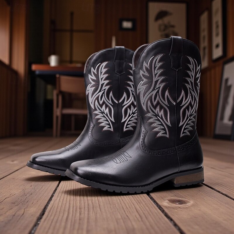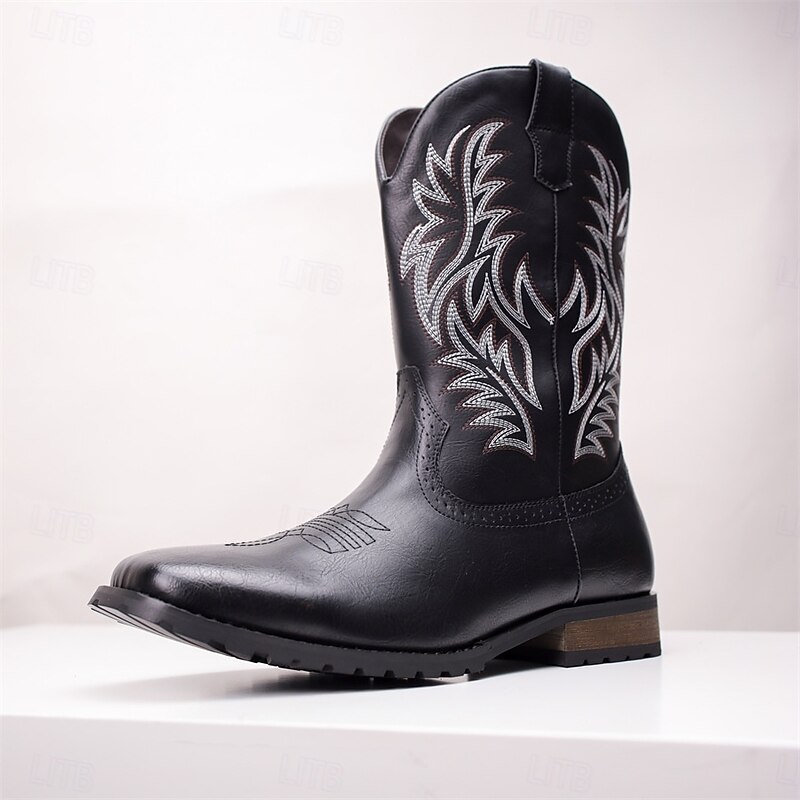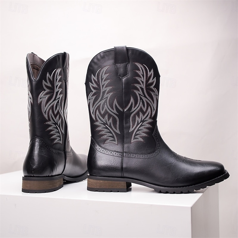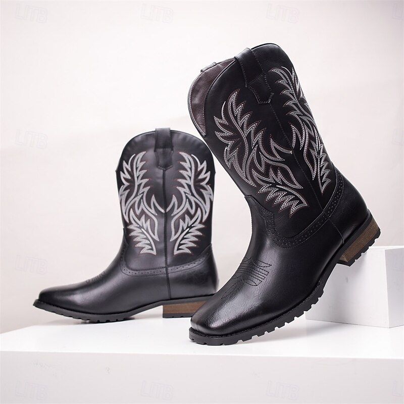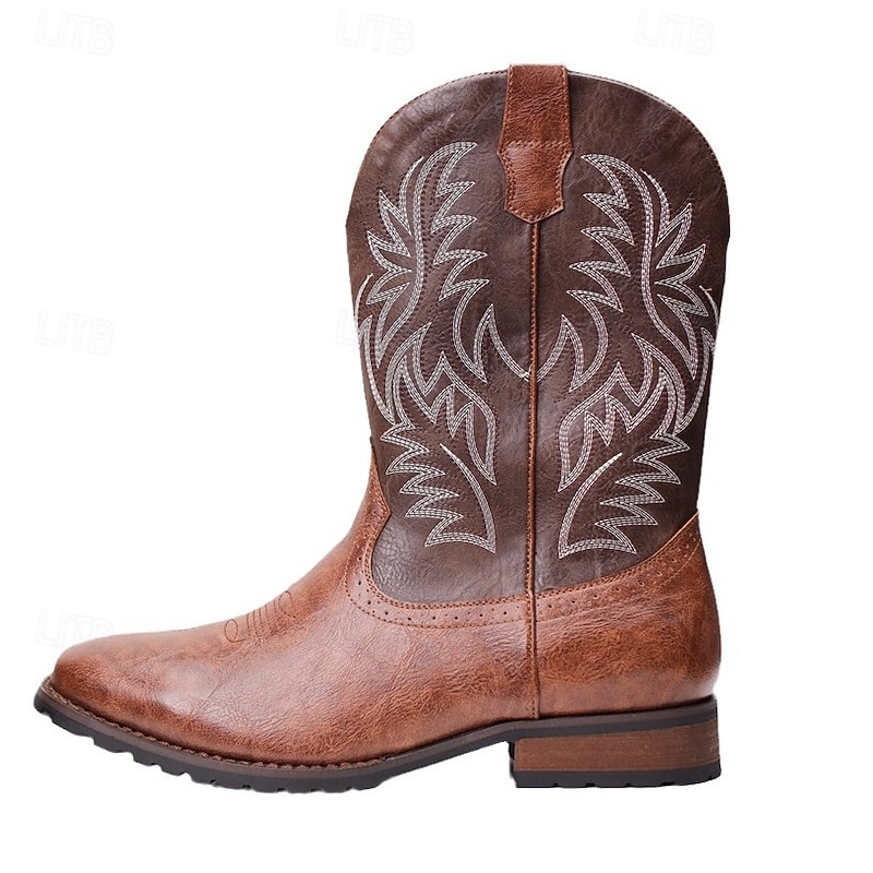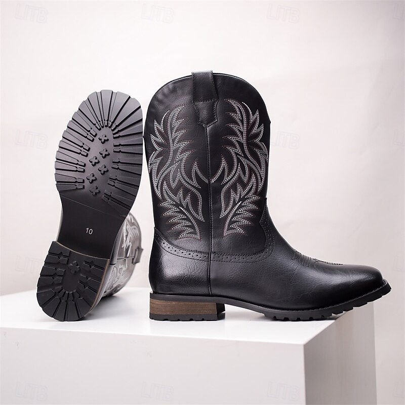 Men's Western Cowboy Boots - Classic Embroidered Mid-Calf Rodeo Style Footwear for Casual Ranch Wear and Country Outfits 6