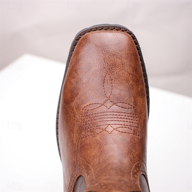 Men's Western Cowboy Boots - Classic Embroidered Mid-Calf Rodeo Style Footwear for Casual Ranch Wear and Country Outfits 5