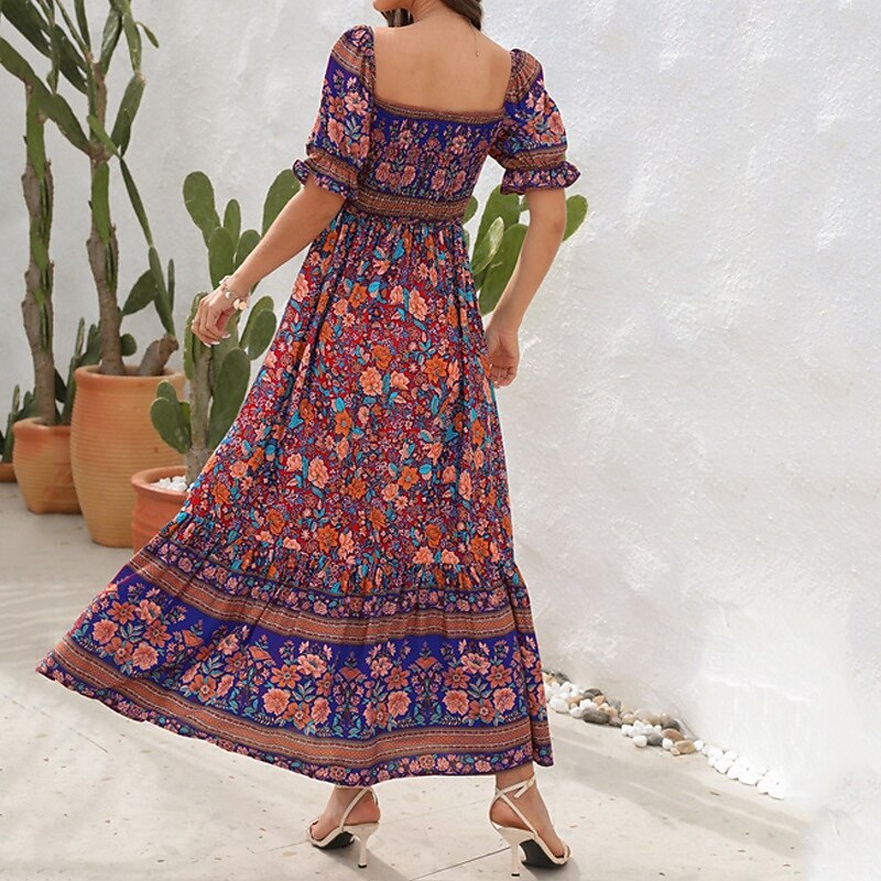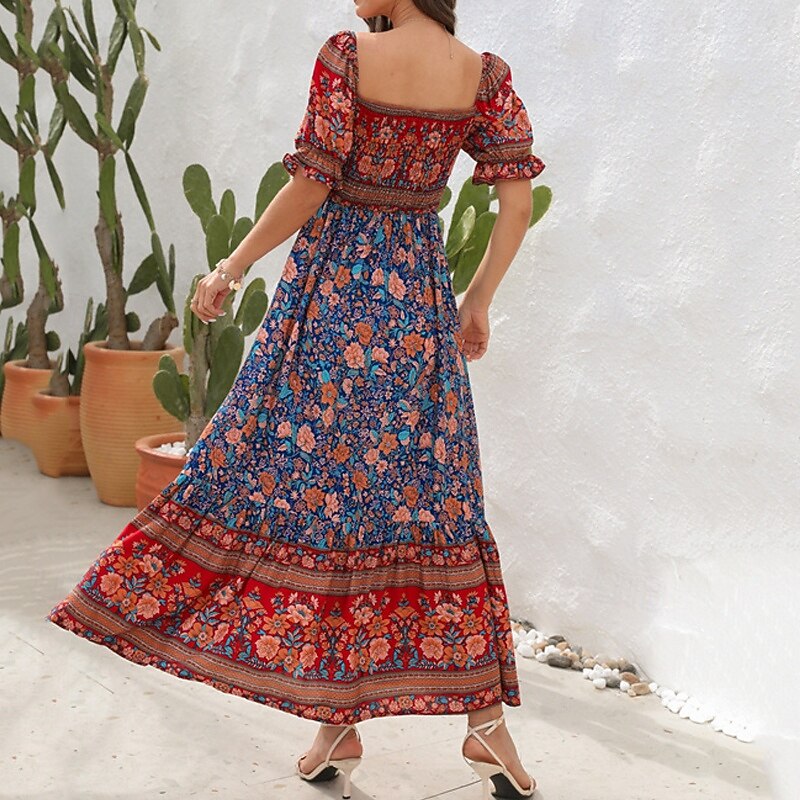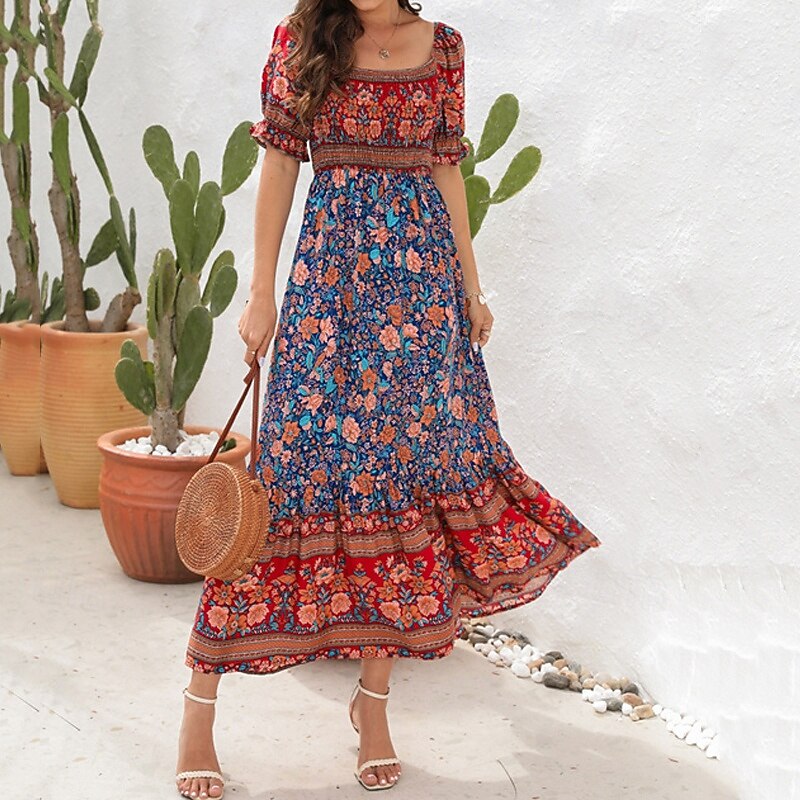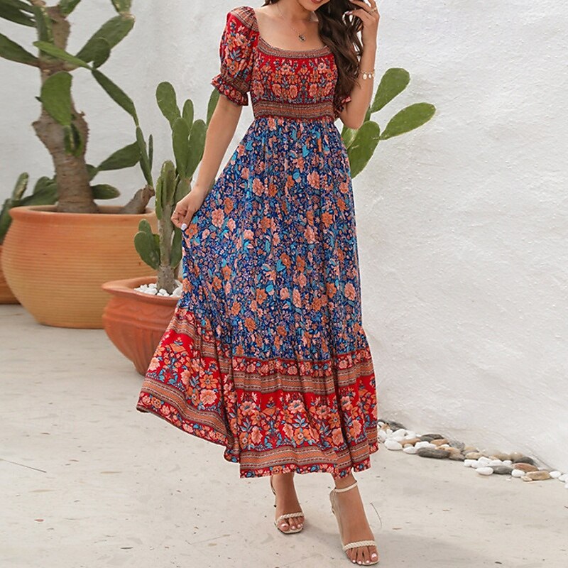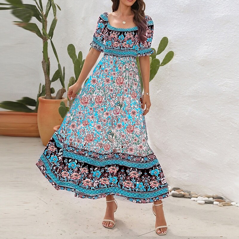 Women's Long Dress Maxi Dress Casual Dress A Line Dress Summer Dress Boho Dress Elegant Stylish Ethnic Vacation Daily Date Regular Fit Floral Short Sleeve Off Shoulder Light Green Red Blue Green 25