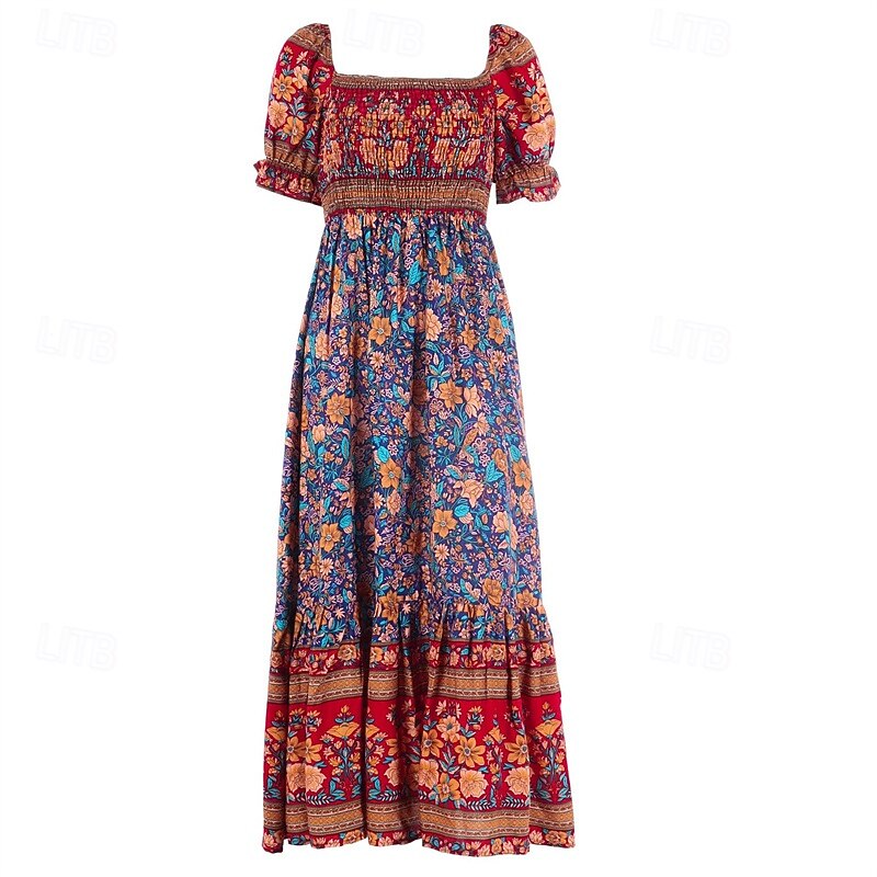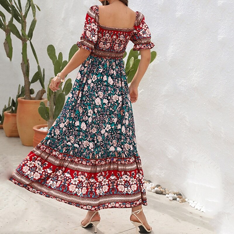 More information about Women's Long Dress Maxi Dress Casual Dress A Line Dress Summer Dress Boho Dress Elegant Stylish Ethnic Vacation Daily Date Regular Fit Floral Short Sleeve Off Shoulder Light Green Red Blue Green