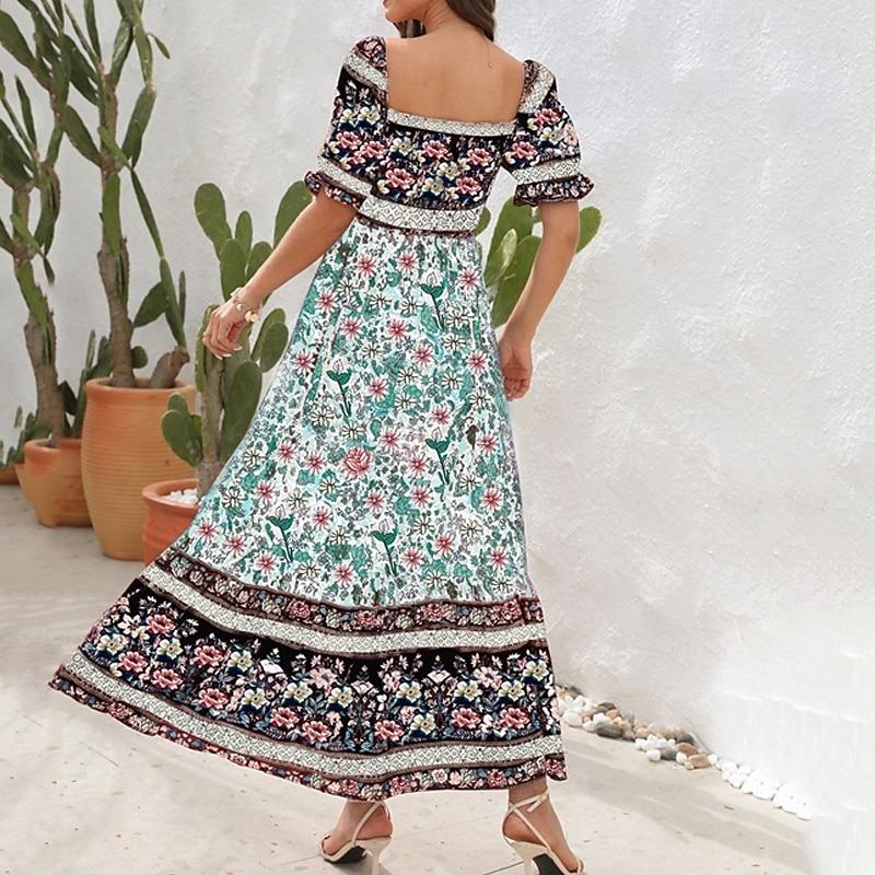 Women's Long Dress Maxi Dress Casual Dress A Line Dress Summer Dress Boho Dress Elegant Stylish Ethnic Vacation Daily Date Regular Fit Floral Short Sleeve Off Shoulder Light Green Red Blue Green 7