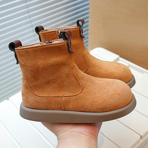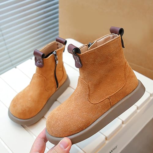 IWIHMIV Girls Ankle Boots Kids Casual Thick Bottom Flat Non Slip Short Booties Outdoor Warm Shoes with Side Zipper 6