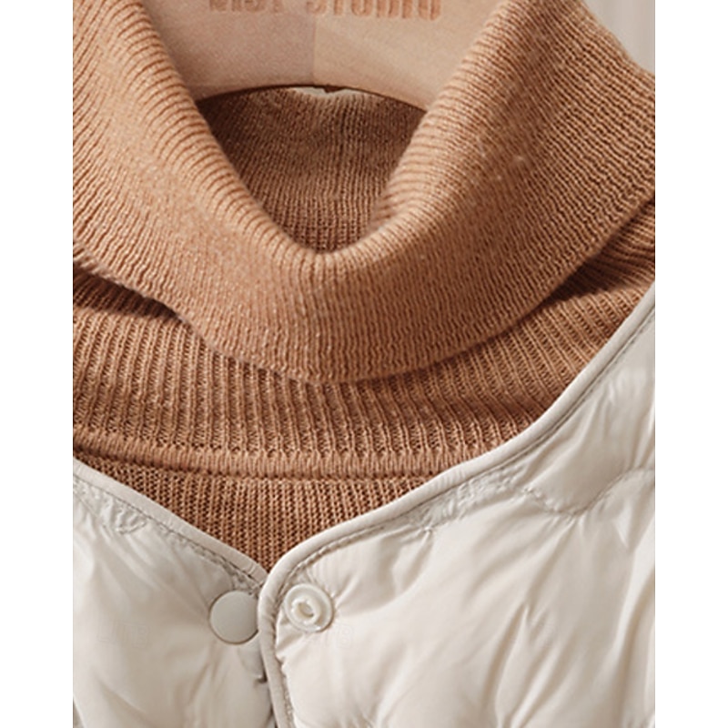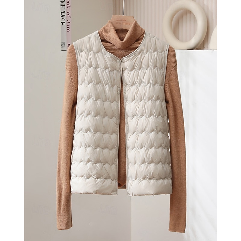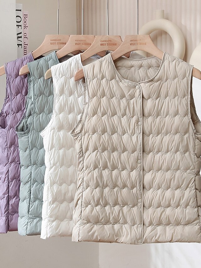 Women's Vest Warm Comfortable Buttons Casual Plain Holiday Going out Single Breasted Regular Crewneck Regular Fit Sleeveless Outerwear Light Pink Light Blue White Fall Winter 10