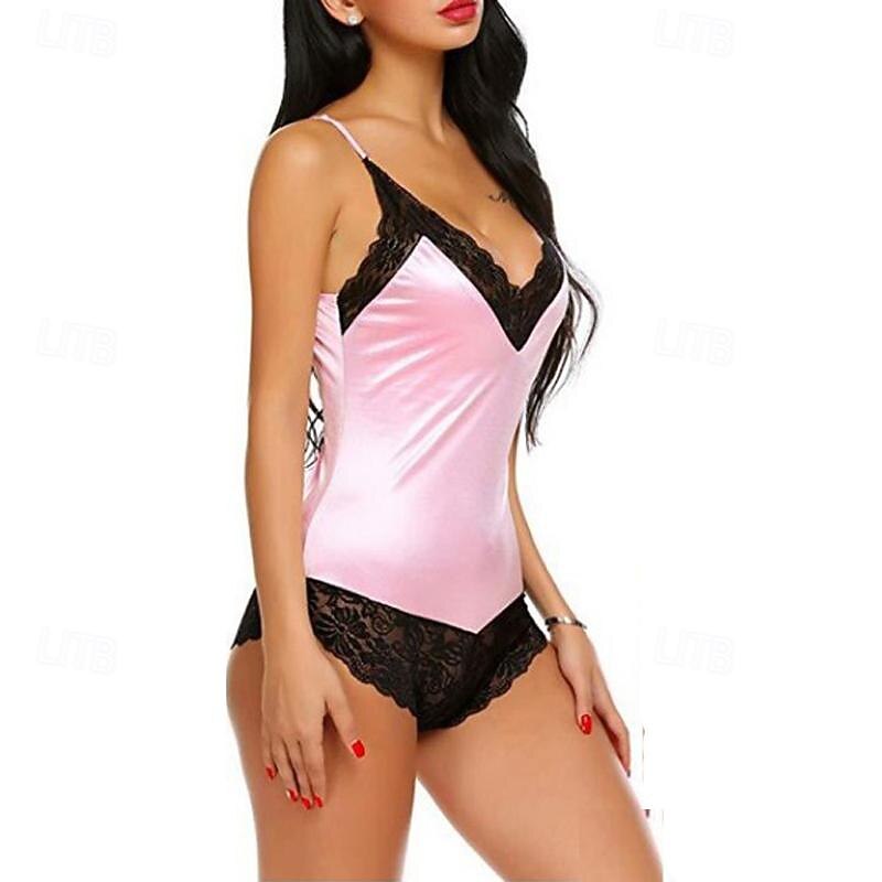 Women's Valentine Night Dress Sexy Lingerie Lace Backless Sexy Erotic Bodies Nightwear Color Block in-demand Comfort supple Home Breathable Home Outfits Date Night Outfit