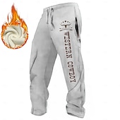 Men's Cowboy Joggers Fleece Sweatpants Drawstring Elastic Waist Vintage Casual Outdoor Home Street Pocket Straight Leg Trousers Thermal Winter 3D Print Black White Brown