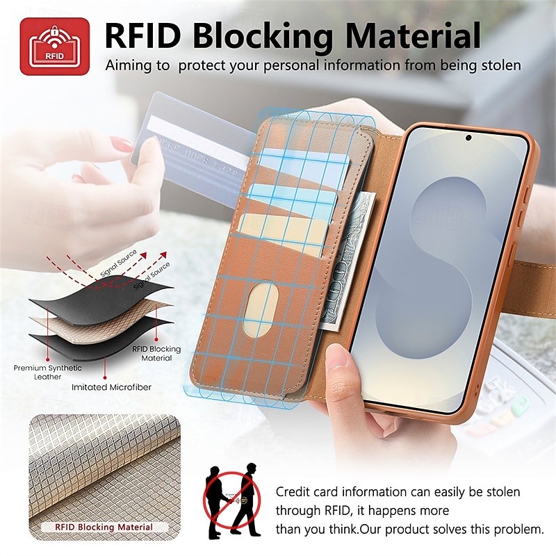 More information about Phone Case For Samsung Galaxy S25 S25 Edge S24 Ultra Plus Magnetic Adsorption Wallet Case Flip Cover with Stand Holder Detachable Support Wireless Charging Retro PC PU Leather