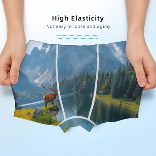 HOT ! Boys' Cotton Boxer Brief Soft Underwear-Majestic Deer Mountain Lake