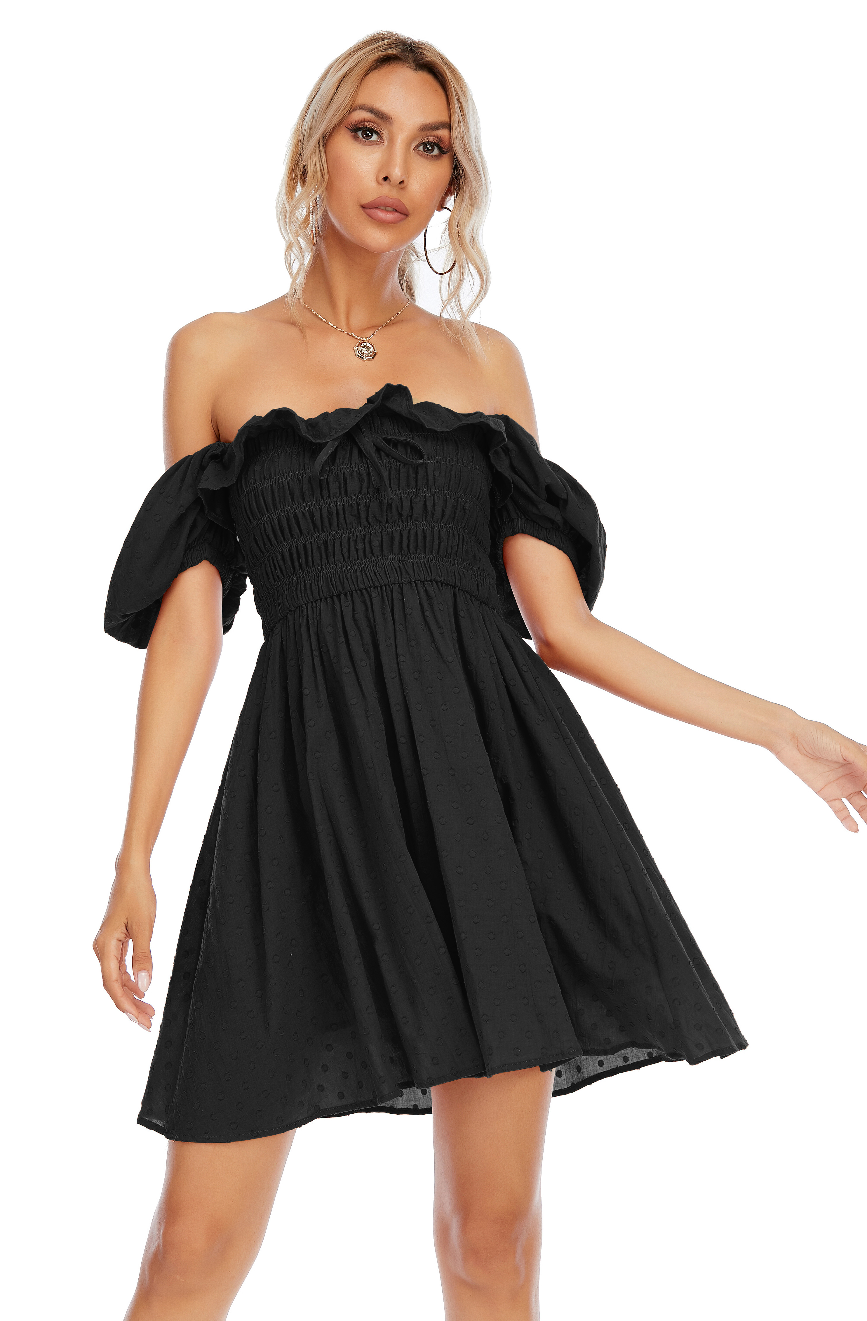 - The off-shoulder dress for women has a mini length that shows your long legs, sexy and charming!