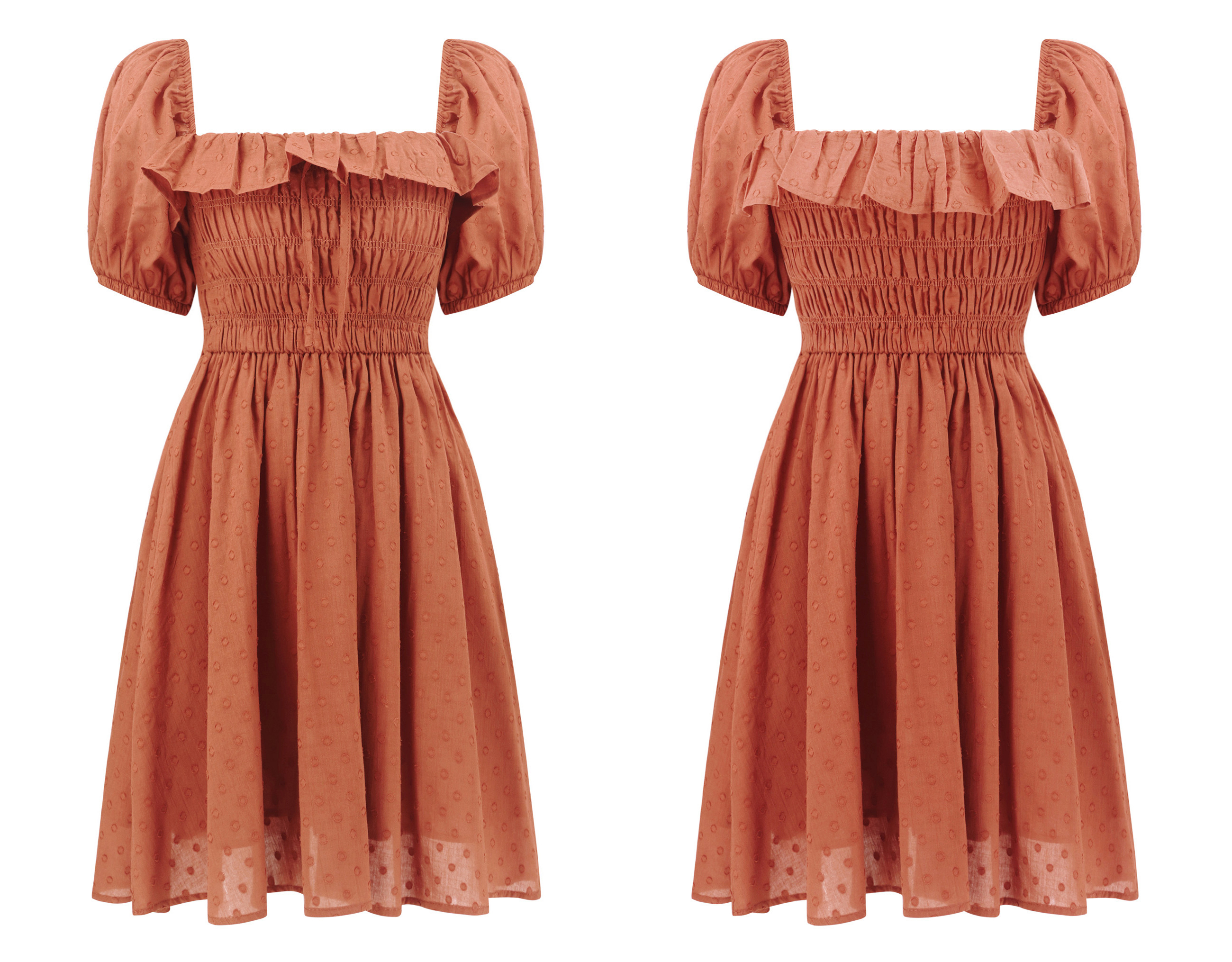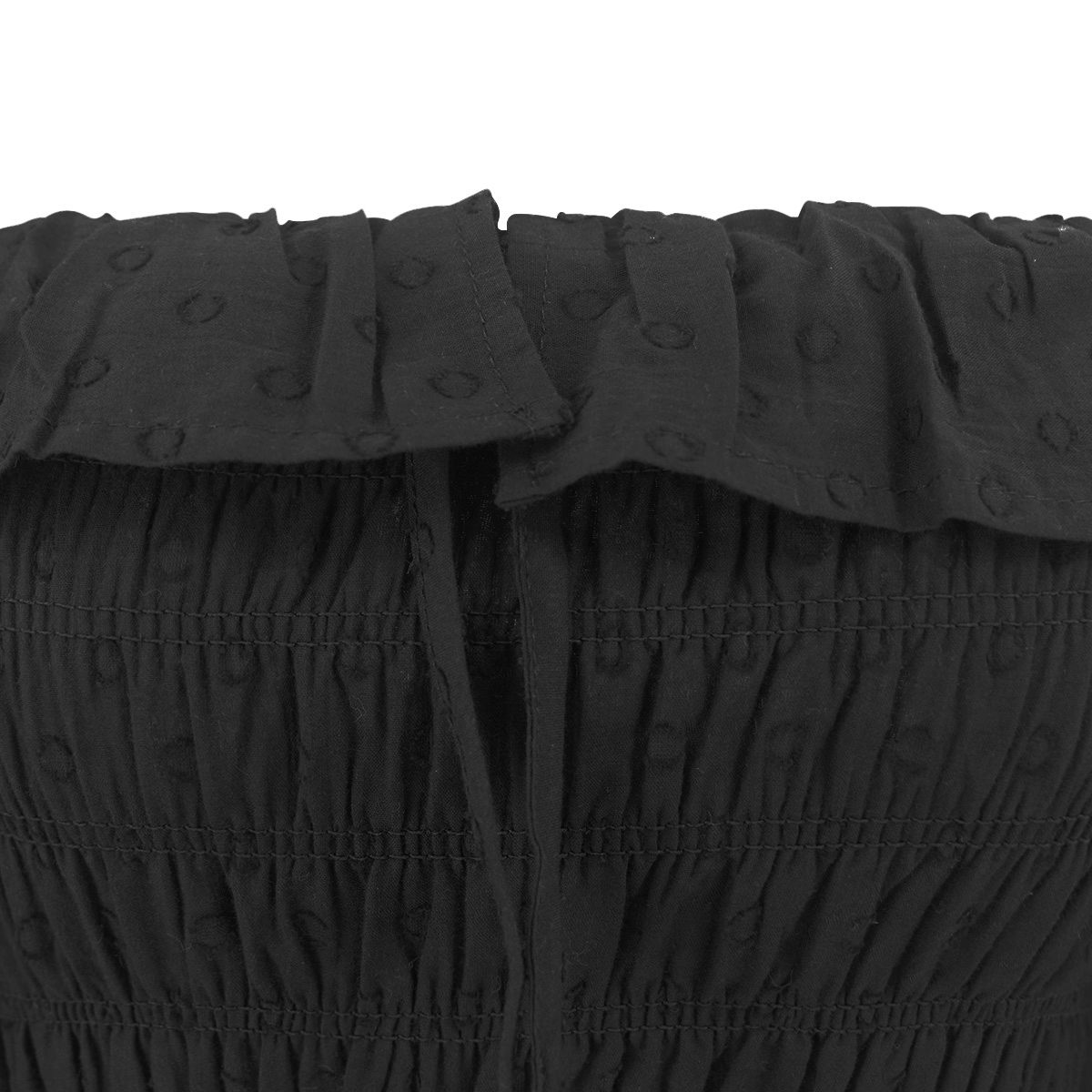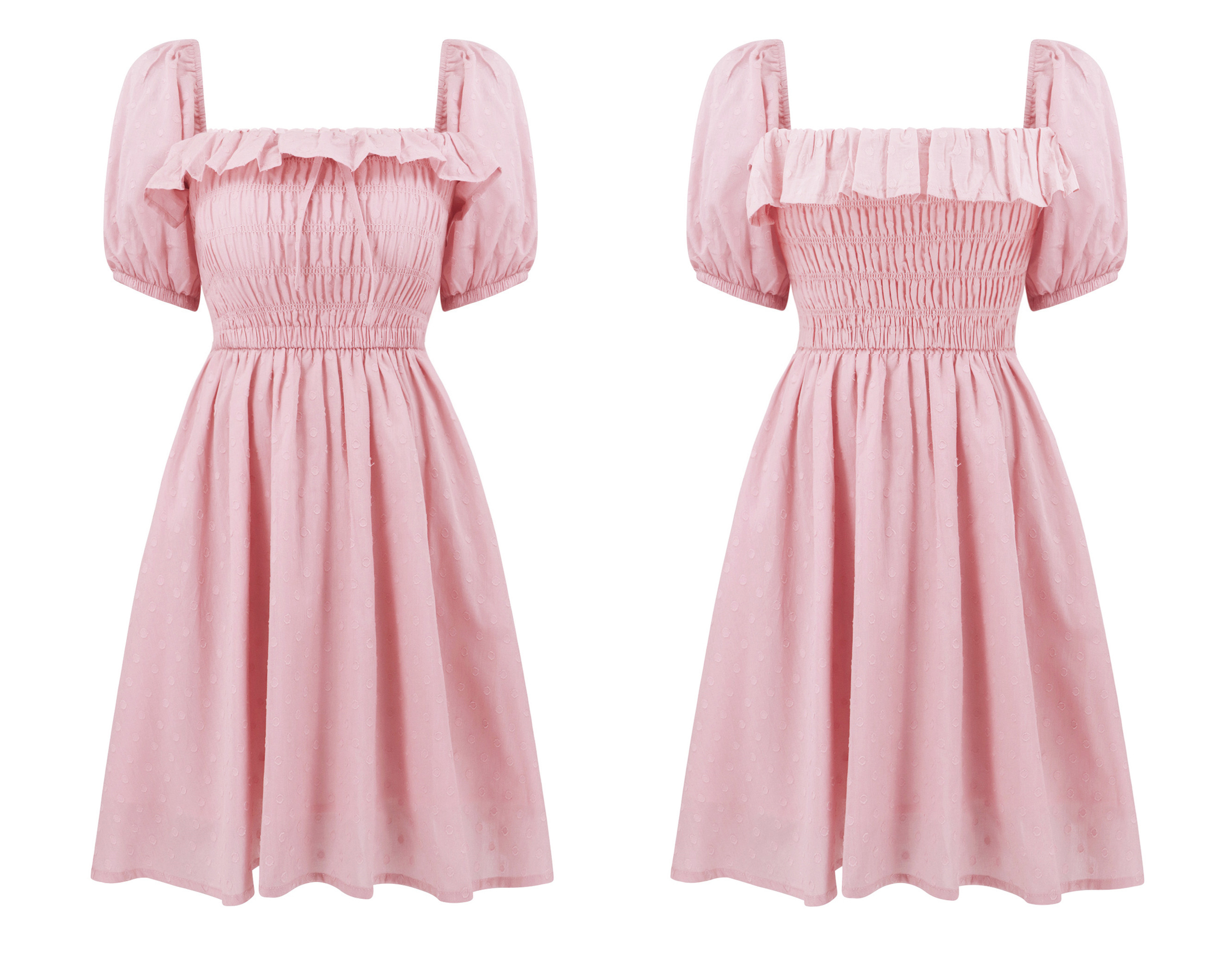 - Frilled Shoulder Width Design and A-Line Swing Hem