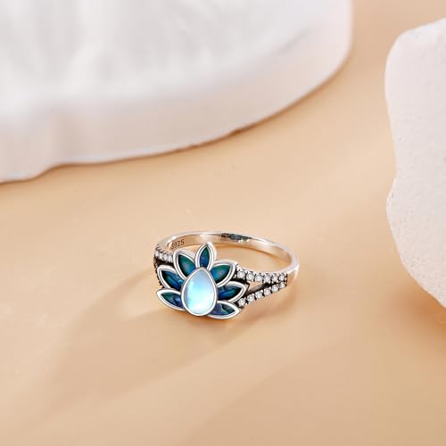 ONEFINITY Lotus Ring 925 Sterling Silver Moonstone Abalone Shell Lotus Flower Ring Inspirational Floral Yoga Jewelry Mothers Gifts for Women Mom Grandma Lotus Lover 6