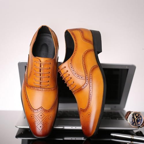 Men’s Leather Wingtip Oxfords Classic Brogue Lace Up Chunky Heel Dress Shoes for Wedding Office Business Formal Derby Shoes 6