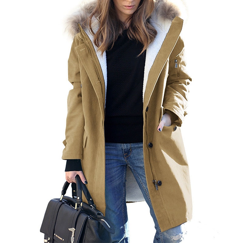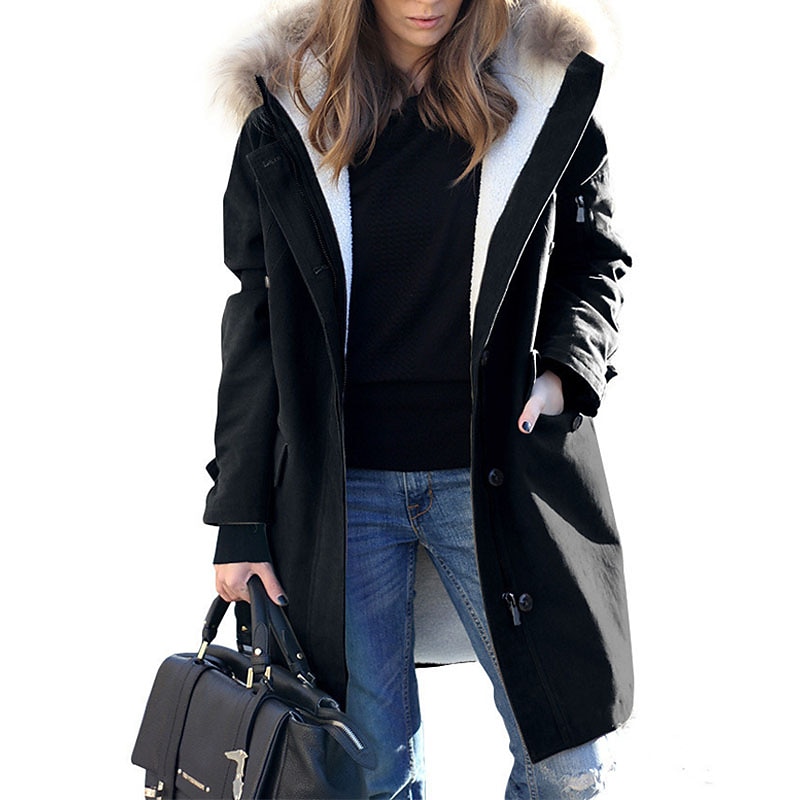 More information about Women's Winter Coat Winter Jacket Parka Windproof Warm Zipper Pocket Fur Collar Fleece Lined Chic & Modern Casual Daily Street Style Solid Color Outdoor Vacation Valentine's Day Street Zipper Long