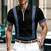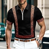 More information about Men's Baroque Zip Polo Shirts Golf Shirt Short Sleeve Polo Shirts Collared Shirts Vintage Casual Vacation Wear Party Outfits 3D Print Quarter Zip Polo Yellow Red Blue