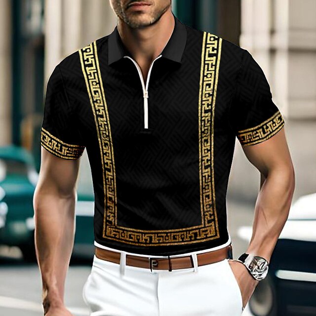 Men's Baroque Zip Polo Shirts Golf Shirt Short Sleeve Polo Shirts Collared Shirts Vintage Casual Vacation Wear Party Outfits 3D Print Quarter Zip Polo Yellow Red Blue 3