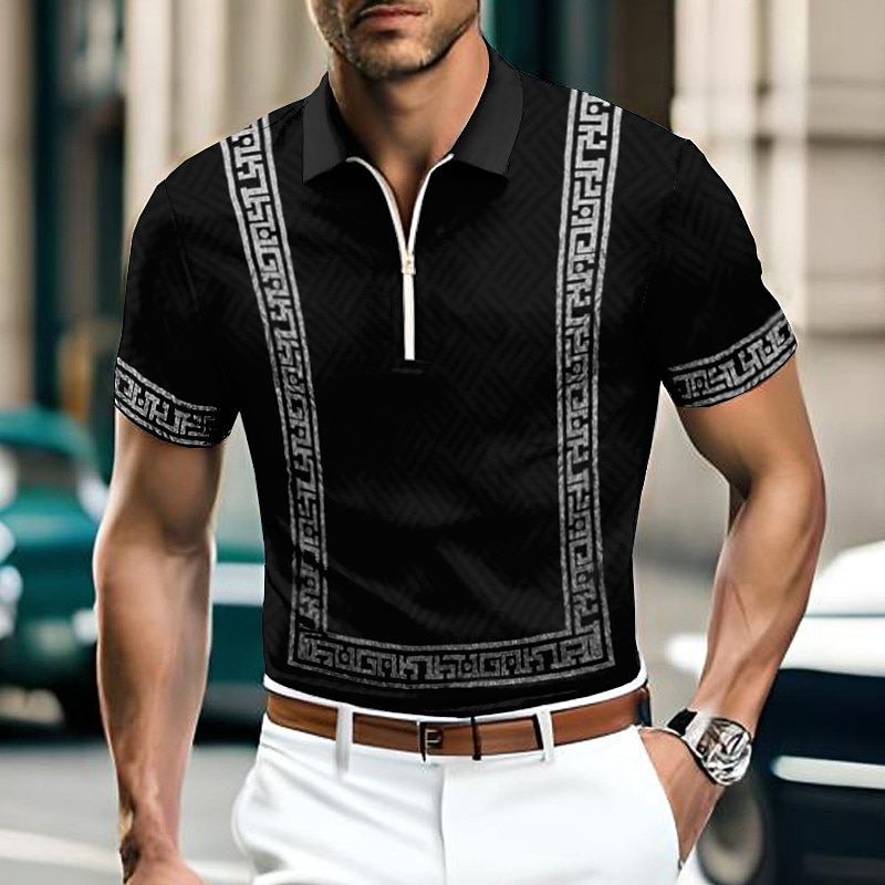 Highlights [Fabric]: Crafted from a high-quality blend of cotton and polyester, this men's polo shirt ensures breathability and durability, making it an ideal choice for a range of activities and climates. [Fit]: Designed with short sleeves and a standard fit, this polo shirt offers comfort and ease of movement, well-suited for both casual and semi-formal occasions. [Design Highlights]: The shirt features an eye-catching Baroque pattern with 3D print detailing in vibrant yellow, red, and blue hues. The quarter zip adds a contemporary edge, complemented by a classic collared neckline that combines style with practicality. [Occasions]: Perfect for vacation wear and party outfits, this vintage-style polo shirt is versatile enough for various events. Whether enjoying a relaxed holiday or attending a casual gathering, this shirt brings an element of sophistication and flair. [Size Range]: Available in a wide range of sizes from S to 3XL, this polo shirt is designed to accommodate diverse body types, ensuring a suitable and stylish fit for all.