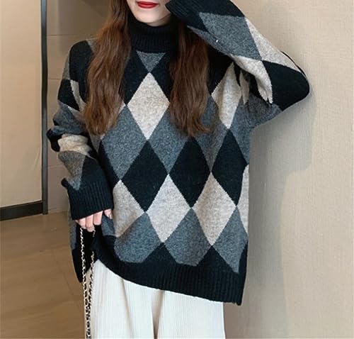 Fashion Women Sweater Autumn and Winter Retro Turtleneck Knitted Pullover Loose Fashion Keep Warm Sweater 6