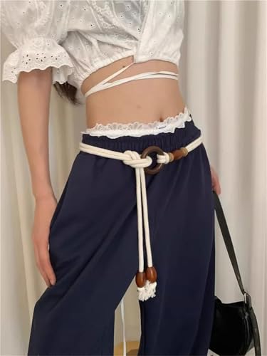Braided Knotted Waist Belt 7Pcs Women's Bohemian Woven Waist Rope - Circular Wooden Beads For clothes 4