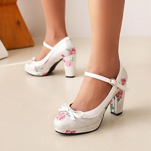 • ➤FINEST QUALITY & COMFORTABLE】: Womens Ladies Classic Two Toned Mary Jane Pump Shoes, Simple Sleek Flowers and Sweet Bow vamp;Buckle Strap Easy On/Off; Anti-slip Platform Lightweight, High Strength, Good Fexibility, Finished with Lightly Cushioned for All Day Comfy and Eco-Friendly Design. Instep ventilation pores for your comfort.