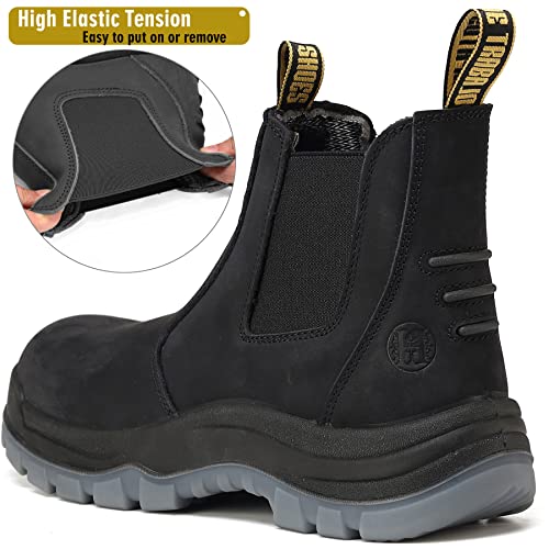 Work Boots for Men, Composite/plush Toe Waterproof Working Boots, Slip Resistant Anti-Static Slip-on Safety Working Shoes 8 9 10 11 12 13