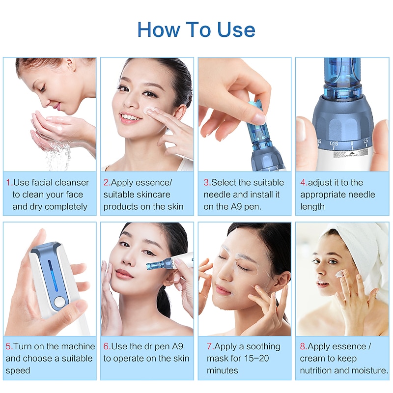 Highlights Advantages: Ultra-long working time,Big capacity battery to ensure the pen working efficiently, New design needle cartridge,working efficient and stable with 3 bayonet lock design. Build-in safety isolation zone to ensure the sealing performance. More hygiene and safe. Led light gear speed display, 6 speeds control. No bruising, infection, discolouration or other complications. Extremely high absorption of any active ingredients applied post-use. Almost all skin types can be treated.