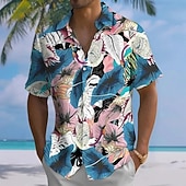 More information about Men's Floral Print Tropical Flowers Summer Hawaiian Shirt Button Up Shirt Aloha Shirt Short Sleeve Hawaiian Holiday Beach Wear Summer Spring Turndown 3D Print Collared Shirts Front One Pocket Blue