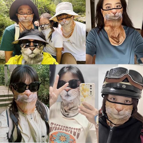yueton 1 Pack Cute Orange Tabby Cat Face Mask Fun 3D Animal Neck Gaiter Face Mask Dust Face Cover with Ear-Hanging for Women Men 4