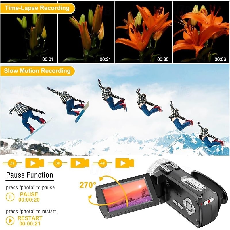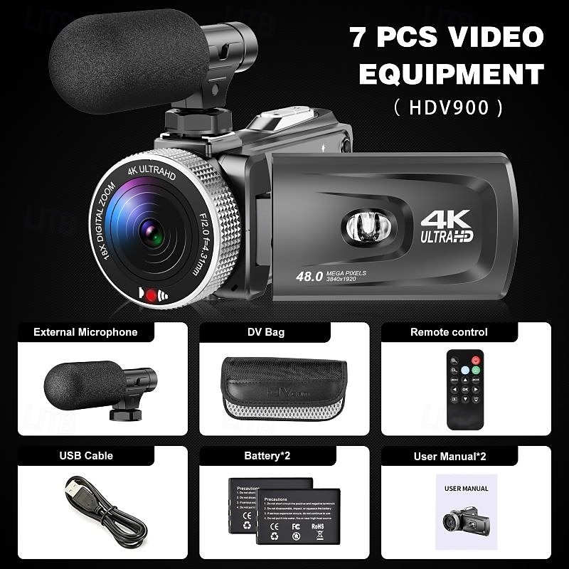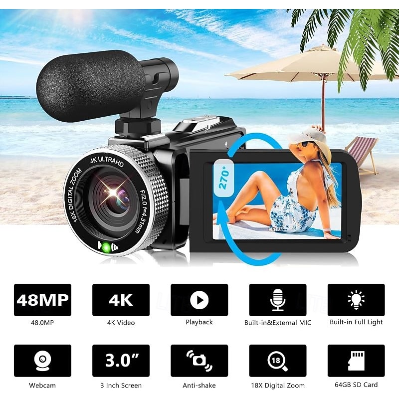 $114.99 - Video Camera Camcorder with Flip Screen 16X Digital Zoom 4K UHD Recording External Microphone Selfie Remote Control 2025. Shop for cheap Camera & Photo online? Buy at lightinthebox.com on sale today!