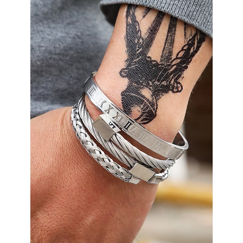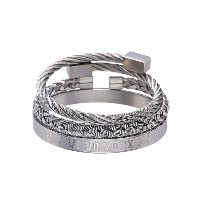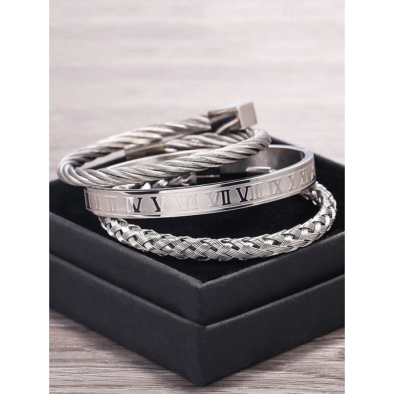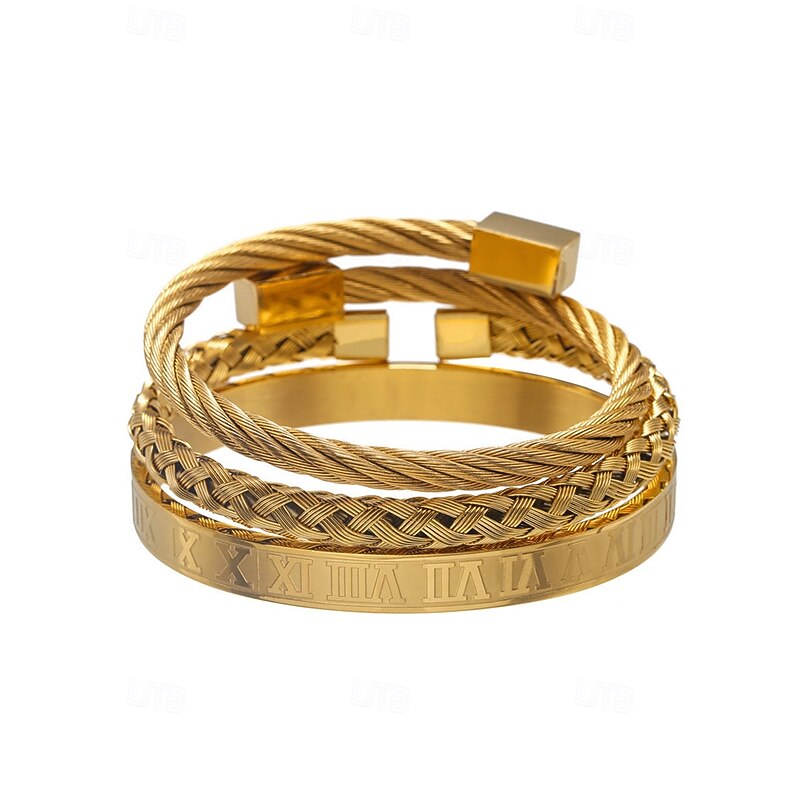 $18.99 - Men's Gold Stainless Steel Bracelet Set – Roman Numeral, Braided, and Cable Wire Cuff Bangles, Stylish Stackable Jewelry for Business, Casual, and Party Wear 2025. Shop for cheap Men's Jewelry online? Buy at lightinthebox.com on sale today!