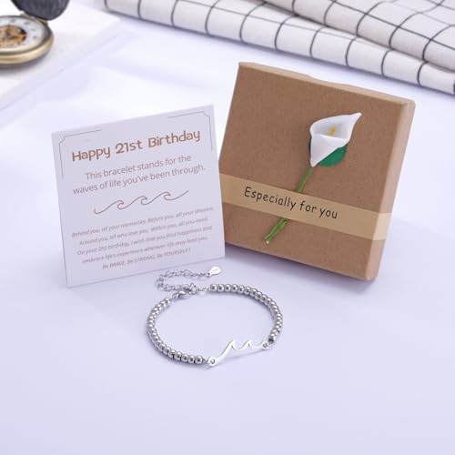 • Big 21st Birthday Gifts for Her: The wave charm represents life's highs and lows, making this the perfect gift for anyone who has faced challenges and grown stronger. Sweet 21st birthday gifts for female friends, soon-to-be 21-year-old gift ideas, birthday gifts for 21 years old women, 21st birthday bracelet jewelry presents for daughter, granddaughter, niece, cousins, sisters. Fabulous and inspirational birthday present jewelry for 21st birthday celebration milestone in her life.