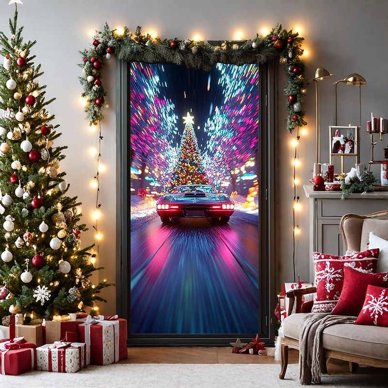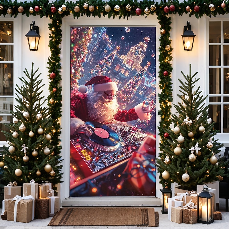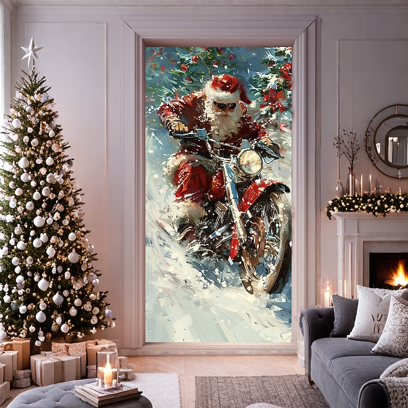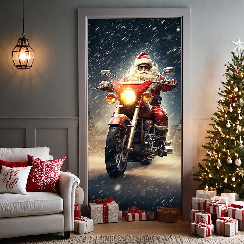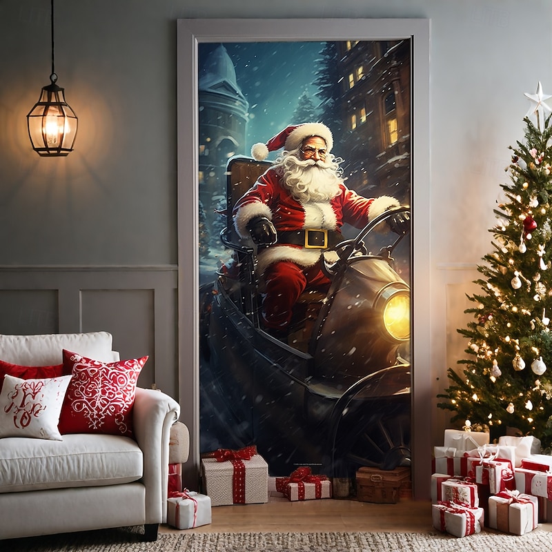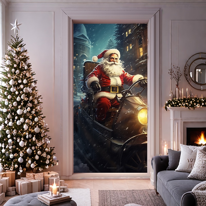 HOT ! Christmas Door Decorations Door Covers Xmas Motor Santa Door Tapestry Door Curtain Decoration Backdrop Door Banner for Front Door Farmhouse Holiday Party Decor Supplies Indoor/Outdoor