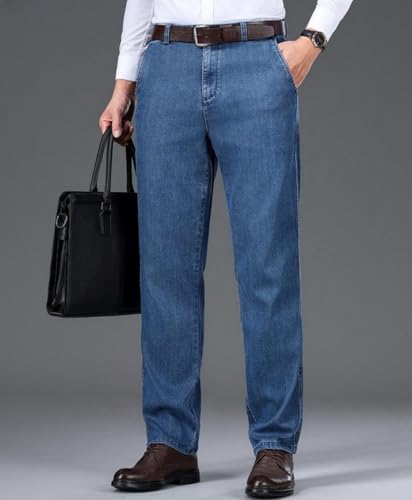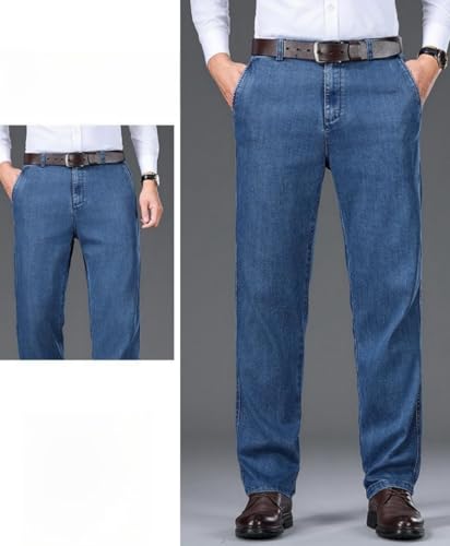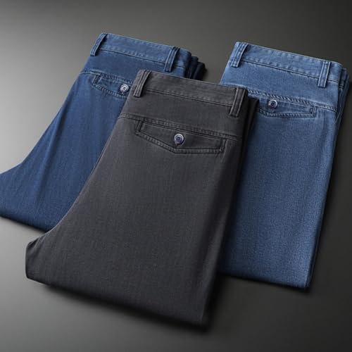 HOT ! Jett Jeans for Older Men, Classic Men's Solid Elastic Waist Wide Leg Jeans, Relaxed fit, Pocket Zip and Button